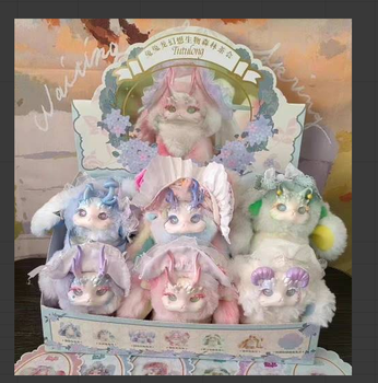Elegante fantasía bosque criatura felpa té fiesta serie mística cajas ciegas presente con un aire de misterio